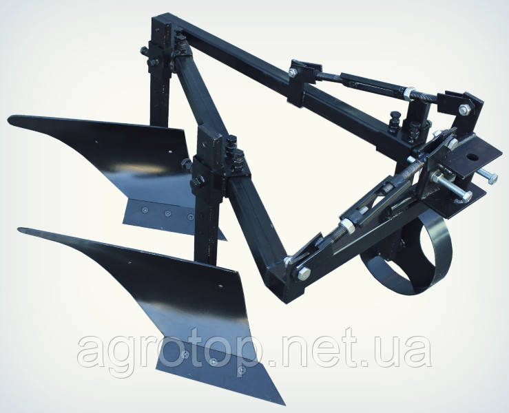 Плуг навісной мототракторний (2-корпусний, Україна) Для виготовлення землі плуг використовують трактори. Замінюються для рихлення, зрошування, часткового перемішування ґрунту, щоб глибоко зачепити наземні залишки культур, бур’янів і шкідників, для їхнього подальшого перегнання і знищення. Зимовий шар ґрунту ліпше насичує вологу. Особливість і відмінність даного плуга: Взяв зчеплення плуга до мототратора призначений для регулювання вертикального і горизонтального положення плуга по відношенню до землі; 5 точок регулювання плуга; Тальреп (вінтова протяжка) призначена для регулювання ширини впашки; Додаткове колесо (на підвісній стоянці) призначено для регулювання глибини впашки. Коригування кута заглиблення виконується шляхом обертання гвинта який змінює кут нахилу тверді плуга. Плуг навішує на навісний механізм мототрактора. Рекомендовані за потужністю мототрактора: від 12 л.с. Купити плуг для мототрактора можна зателефонувавши нам, або замовити на нашому сайті Агро7. Доставка по всій Україні без передоплати.